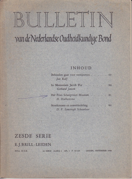 Inhoud: Behouden gaat voor vernieuwen, In memoriam Jacob Por, Het Fries Scheepvaart Museum, Streekmuseum en ressortindeling