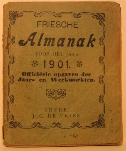 Friesche Almanak uit 1901, boekje ligt los maar compleet.Hierbij enkele knipsels uit 1901