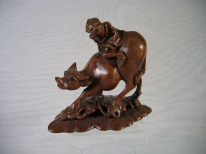 Houtsnijwerk, boer met buffel