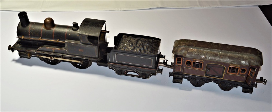 Antieke trein - Duitsland met originele sleutel Met veel toebehoren als rails, wissels Lantaarnpalen, overweg bel, seinbrug en seinpaal Dubbele brug