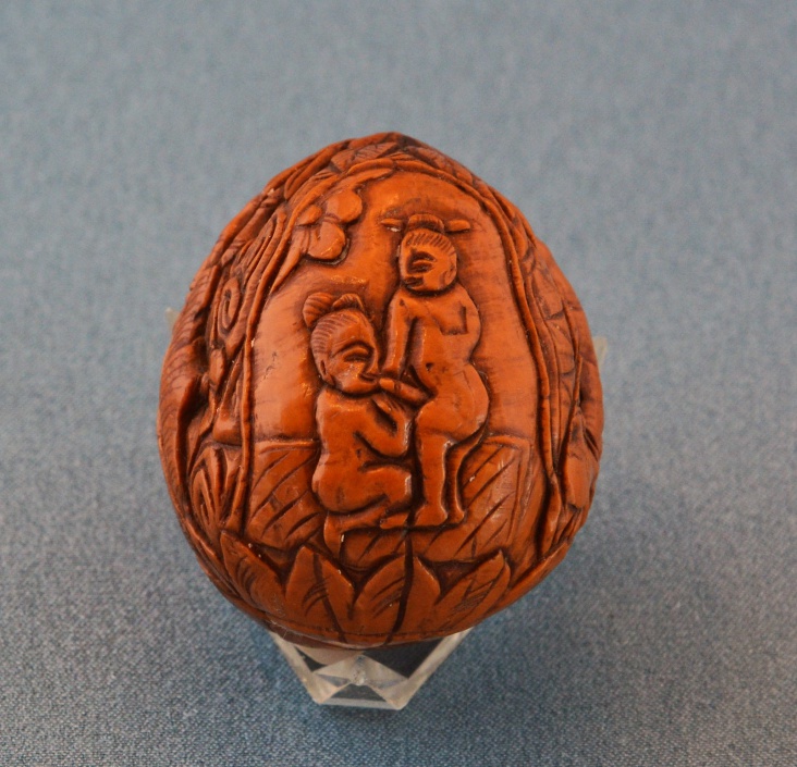 Cat.nr. 2060 Chinese carved walnut with erotic figures