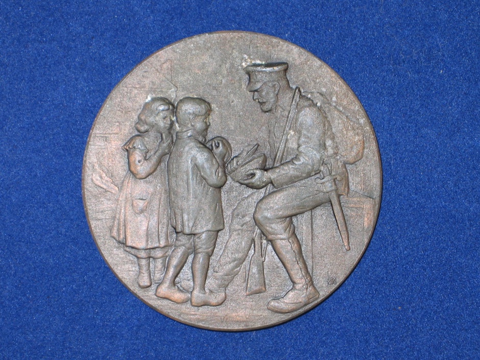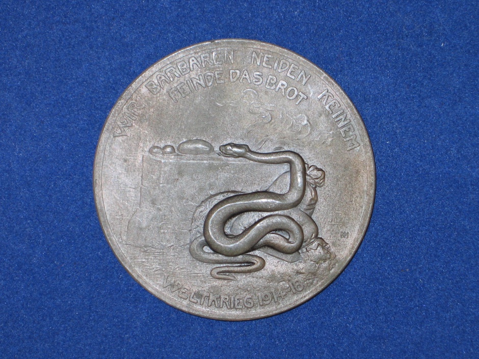 Bronze Medaille "Wir Barbaren neiden keinem Fein das Brot" Durchm. 60 mm Die Deutschen verteilte das Brot an die Belgier