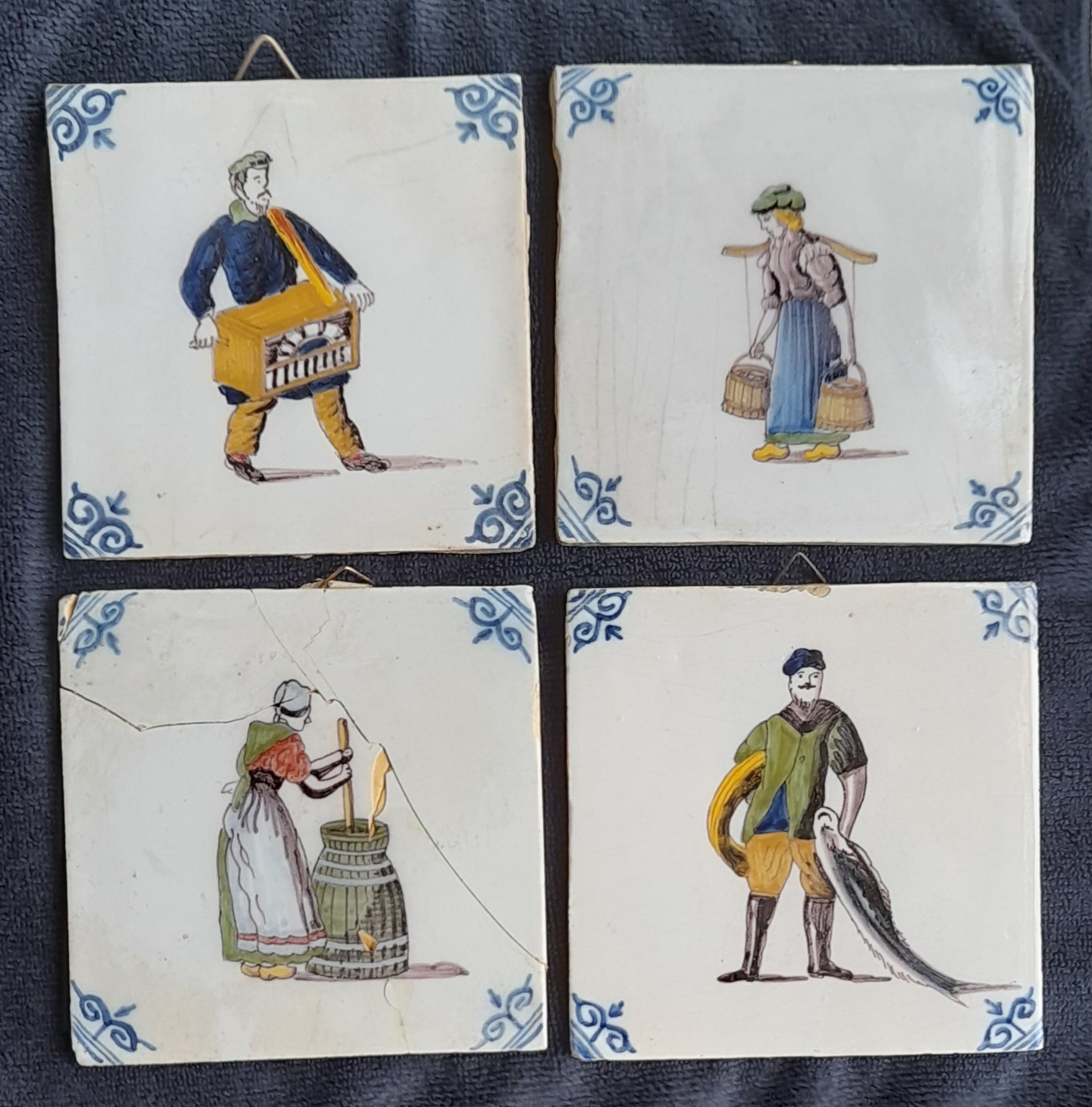 Set van vier tegeltjes, handbeschilderd