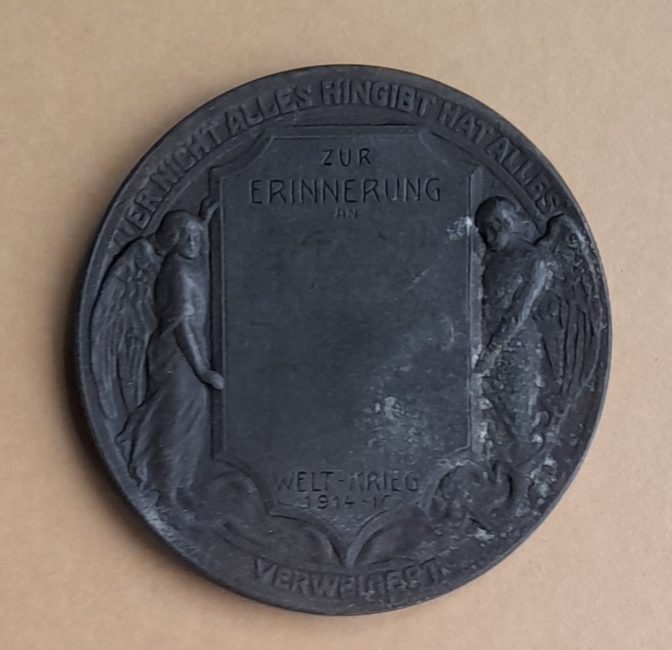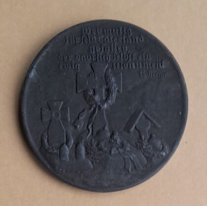 Zink Medaille Erster Weltkrieg: Weemutig für sein Vaterland gefallen der baut sich selbst ein ewig Monument