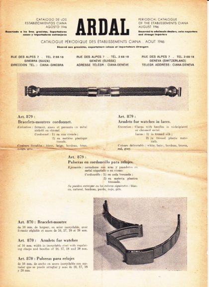 Cataloque périodique des établissements Ciana Bracelets-montres cordonnet, Pulseras en cordoncillo para relojes Bouttons de manchettes, Briquet en métal moulé, Armlets