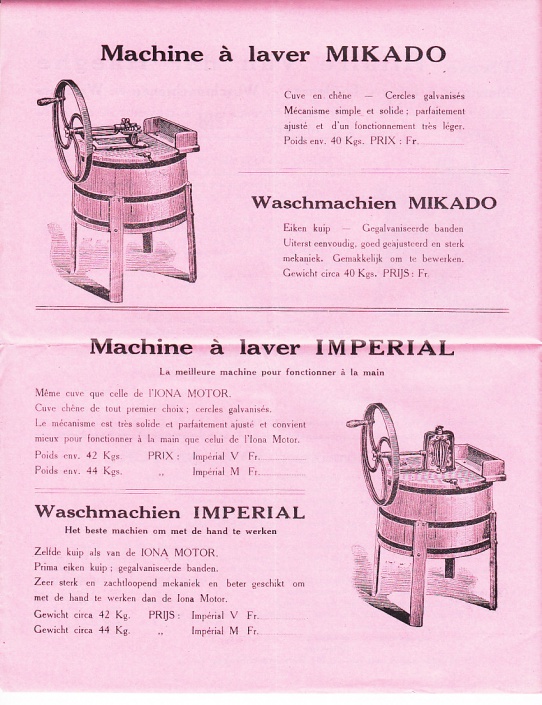 Machines à laver, wringmachienen, Machine `a laver MIKADO Machine à laver IMPERIAL RADIO ATLAS Met originele brief Size: 44 x 28 cm., folded
