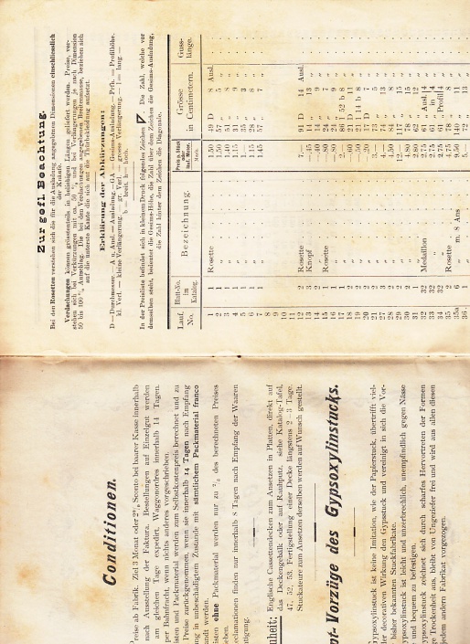 Preislisten Gypsoxylinstuck und Stuccolin Dekorationen