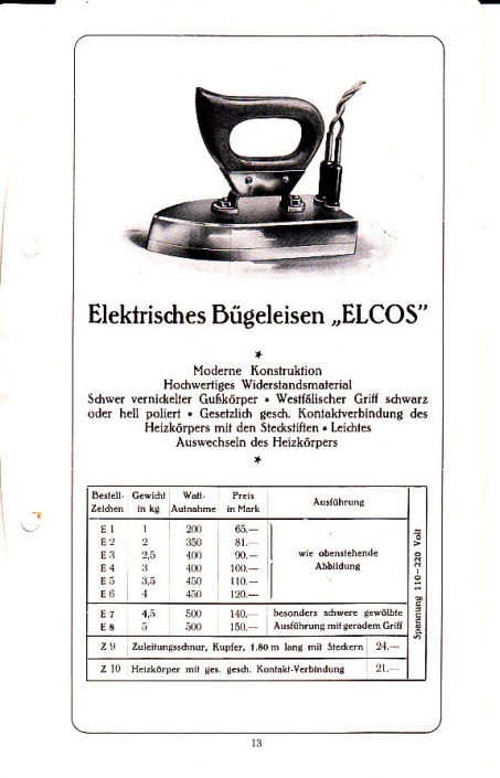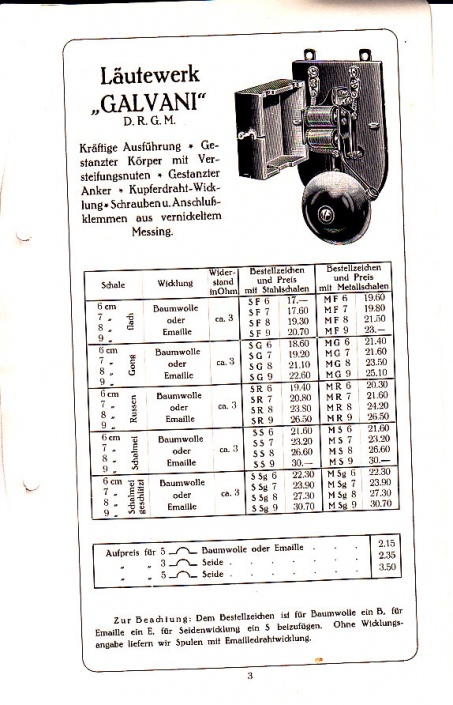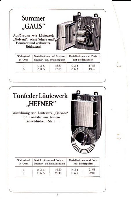 Läutewerk Galvani, Läutewerk Ampere, Summer Gaus, Bügeleisen Elcos, Birnentaster. With original letter, dated 14 juin 1922 Seize: 15 x 23 cm., 16 pages Date: 1922