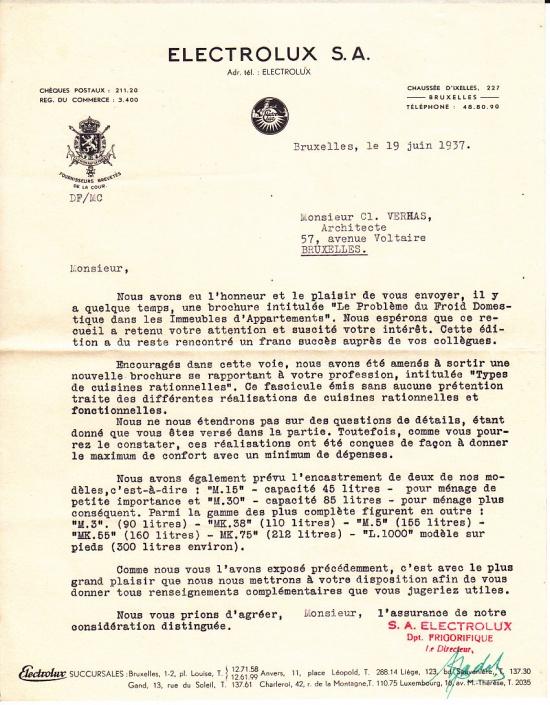 Types de Cuisines Rationelles Creations Electrolux 13 tekeningen van keukenontwerpen. Met originele brief.
