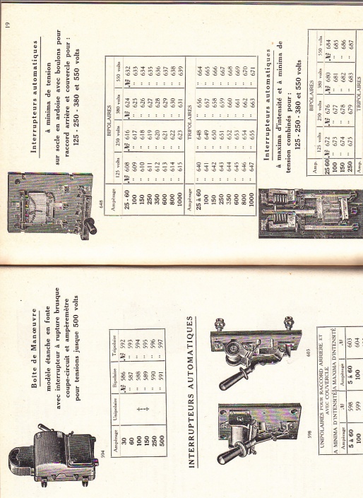 Mooie catalogus met schakelaars, meetapparatuur, kabelverbindingen, lampophangingen, hanglampen,bureaulampen, glazen kappen, strijkijzers, ventilatoren, verwarmingslampen, pompen enz.