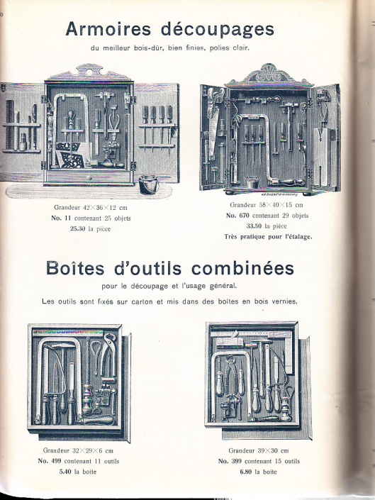 Appareil bréveté pour pyrogravure "Juwel"Garnitures d'outils pour la cuisine, "Goodell-Pratt",Lampe à souder "Tinol",Amoires découpages,