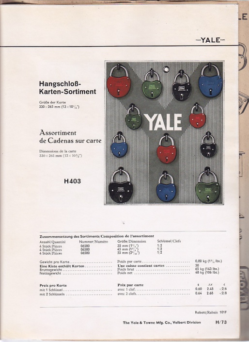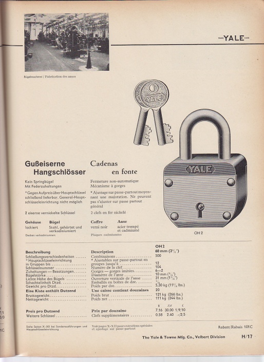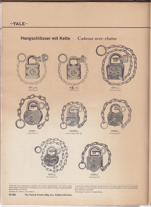 The Yale & Towne Manufacturing Cpmpagny Sch"ne Katalog mit Hangschlösser und original Briefe Katalog H36