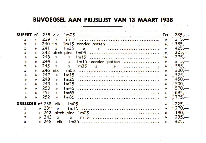 Met prijslijst gedateerd: Maart 1938