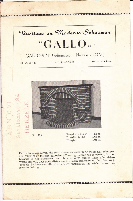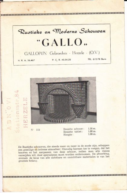 Gallo - rustieke en moderne schouwen Gebr. Gallopijn - Herzele, België Inclusief prijslijst Afm. 17 x 26 cm. - 7 pagina's