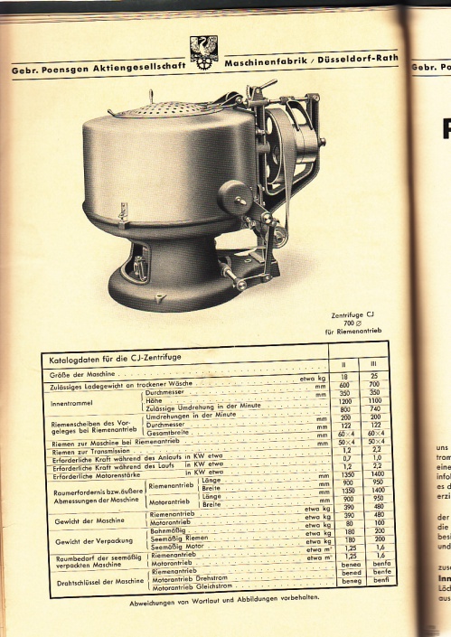 Wäscherei Machinen Doppeltrommel Waschmachine, Pendel Centrifuge CHII, Muldenmangel, With original letter Date: 13 August 1936