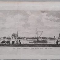 2029 Kopergravure Kampen van den dijk gezien door D. de Jong