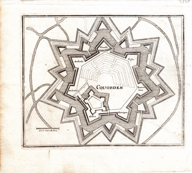 Kopergravure van de vestingplattegrond van Coevorden