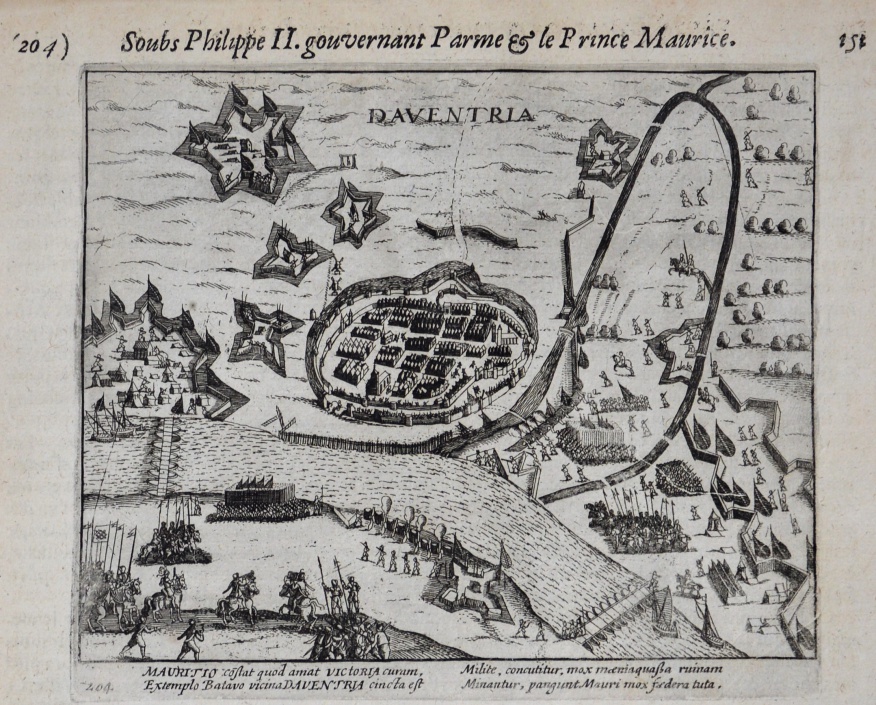 Kopergravure van Deventer (Daventria0 uit 1616 van Baudartius, blad 204