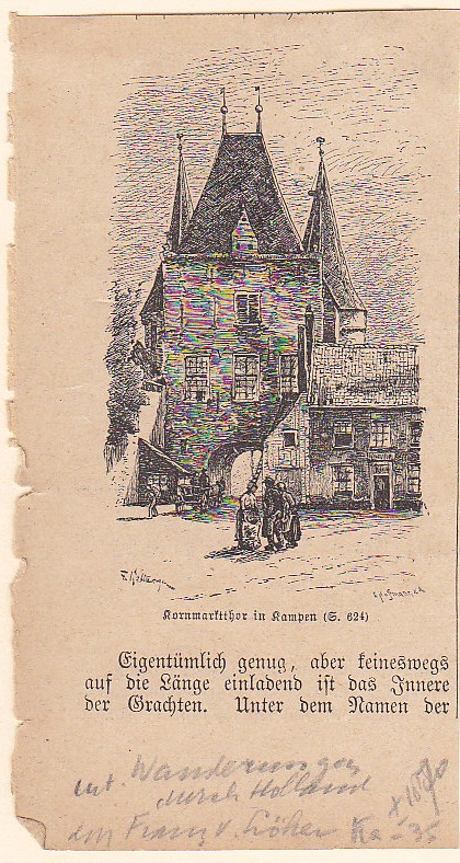 Kampen Korenmarktpoort houtgravure Franz Löher