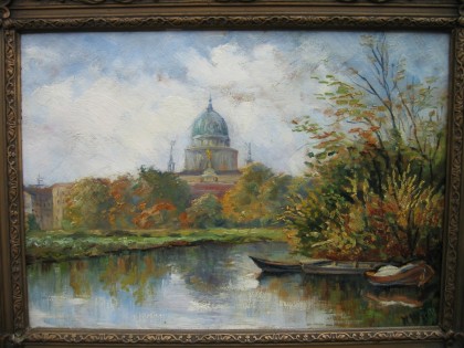 Olieverf op paneel afm. 36x26 cm. in originele lijst gesign. RO, onduidelijk. Aan de achterkant een naam (onduidelijk) en datering 1933